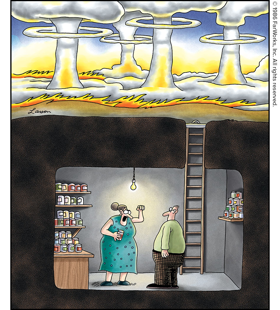“How many times did I say it, Harold? How many times? ‘Make sure that bomb shelter’s got a can opener—ain’t much good without a can opener,’ I said.”